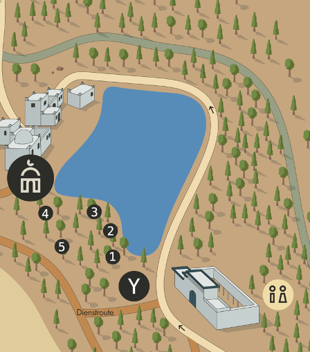 Vanuit het idee dat de karavanserai en het bedoeïnenkamp ontmoetingsplekken zijn waar verhalen gedeeld worden, is ervoor gekozen om en de tipi's en yurts te plaatsen rondom deze erfgoedlocaties. Door het Museumpark lopen meerdere wandelroutes. De tipi's en yurtgrenzen aan deze routes, wat zorgt voor nieuwe rustpunten voor bijvoorbeeld reflectie, lezingen, workshops of dialogen rondom de thema's van het Museumpark. Daarnaast bieden deze plekken de mogelijkheid om niet slechts een dag het Museumpark te bezoeken, maar een gehele pelgrimservaring te doorleven.